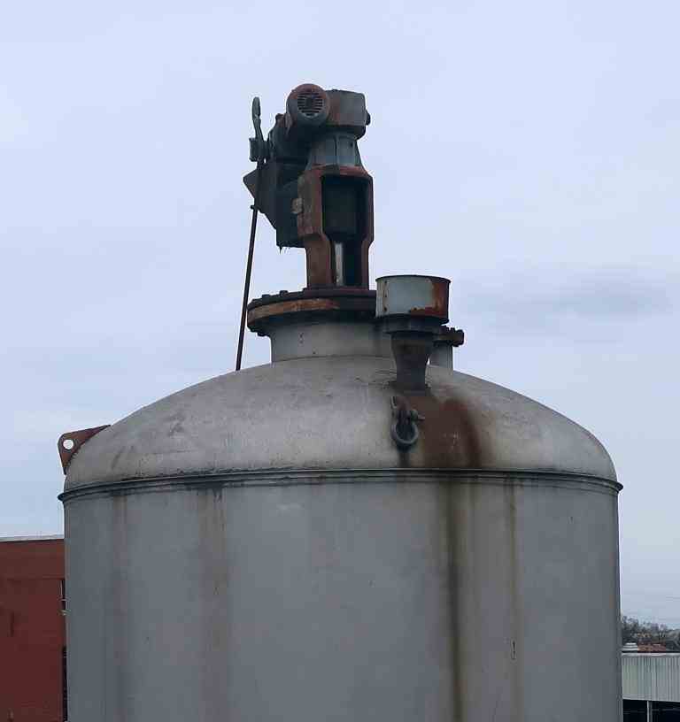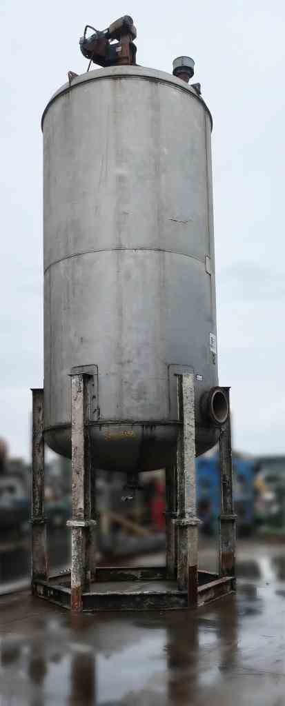 Used 6000 gallon vertical stainless steel tank. Tank is 96" diameter x 16'-0" straight side. Agitator is untested. Electrical requirements are 230/460, 3 phase. Top nozzles are two- 4" flanged. Side nozzles are one- 16" flanged, one- 4" RFSO flange, one 4" pad flange, one- 1" threaded nipple, and 1" threaded coupling. Bottom has one 6" RFSO flange.