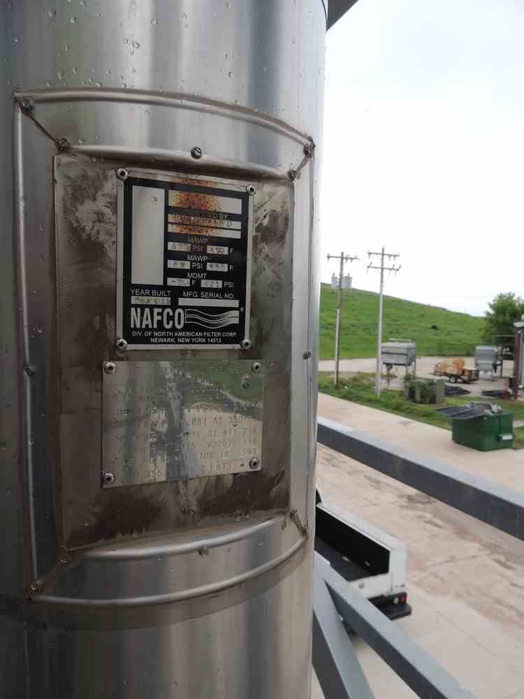 Used 10.75"Dia Superheated Steam Cartridge Filter. Mfg Nafco. Model 43040-F10B304. MAWP 471PSI @470F/ FV @350F. (5) 304 SS Filter Cartridges. Serial # and National Board #78145. Built 2015.