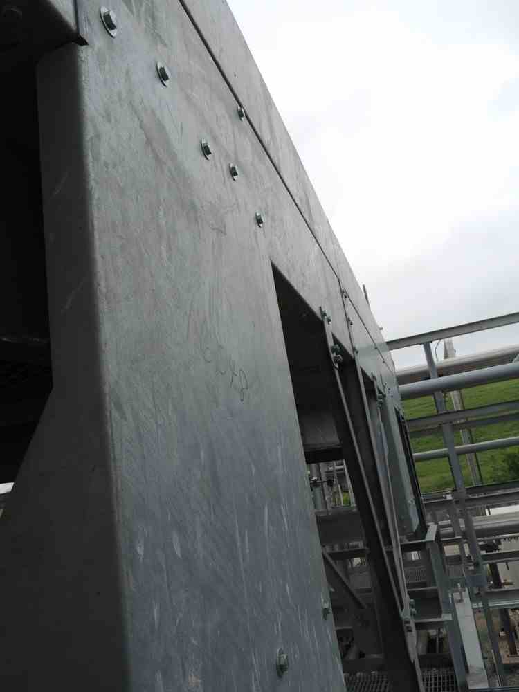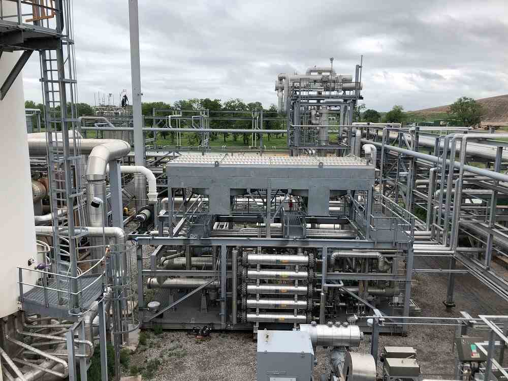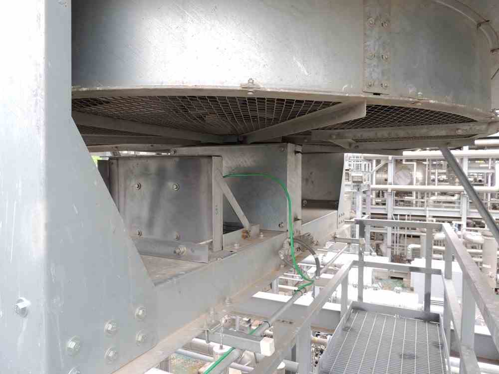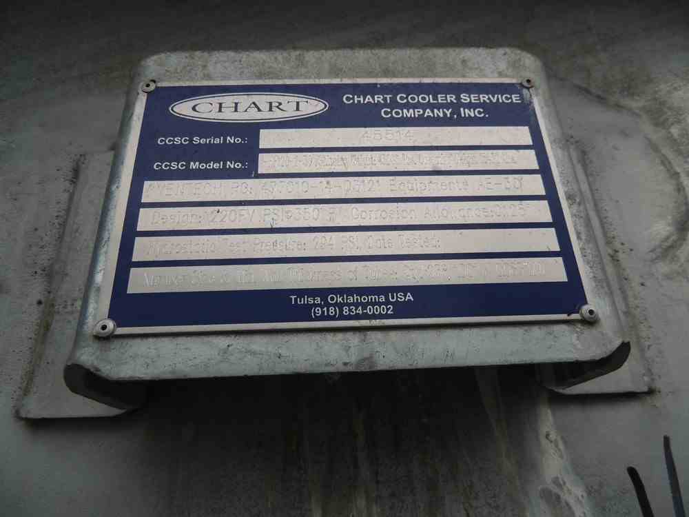 Used 2838 Sq. Ft. 304L SS Fin Fan Heat Exhanger. Mfg Chart. Model H120. 2838 Sq Ft (Bare), 39519 Sq Ft (Extended). (238) 1" OD Tubes - 2-pass. Rated 220PSI/FV@350F. (2) 20HP Fans drawing 24200 lbs. Serial #45514. National Board. Built 2015. Used as Syn Gas Trim Cooler.