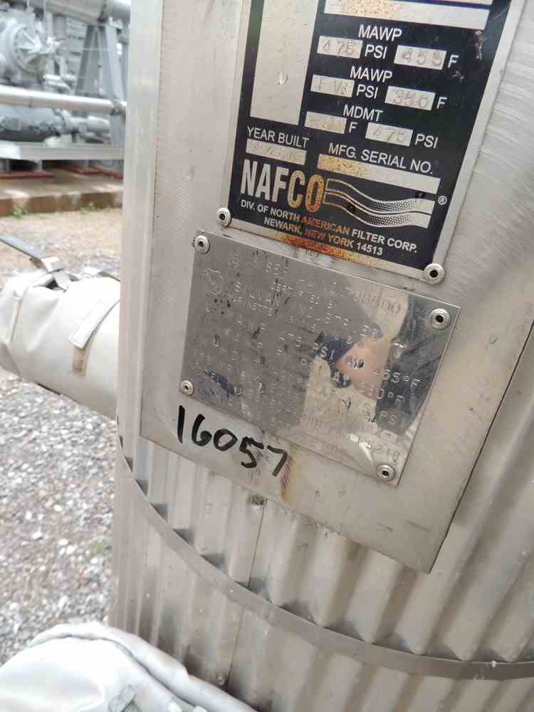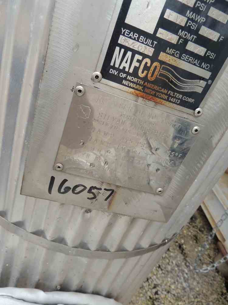 Used 20"D Vertical Cartridge Filter. Mfg Sylvan Ind. Model 93060F20B/304SS. Rated 475PSI@455F. 8'2" T/T. Leg Mounted. National Board stamp. Built 2015. weight 2950 lbs.