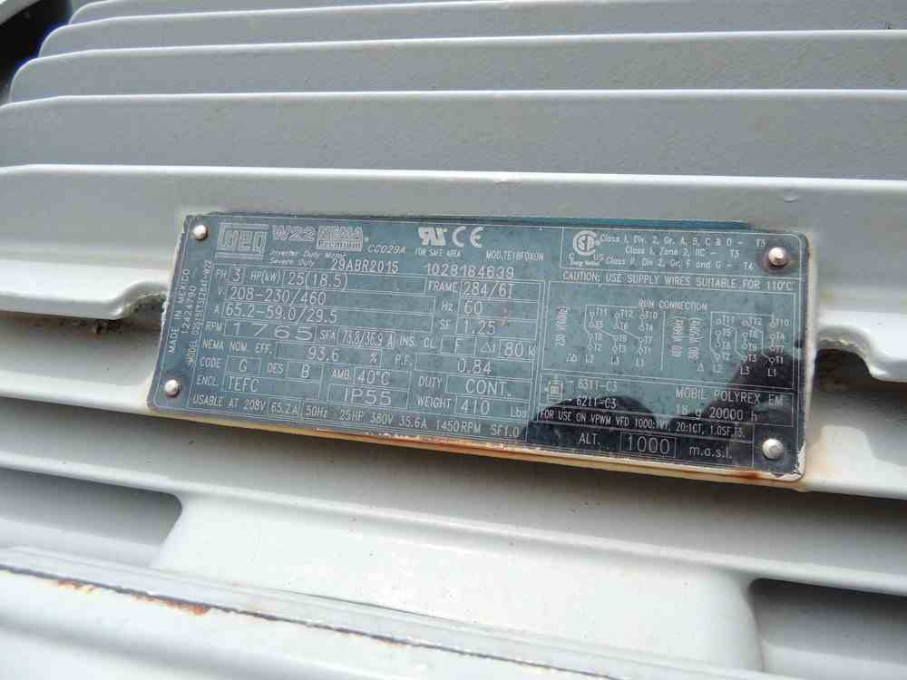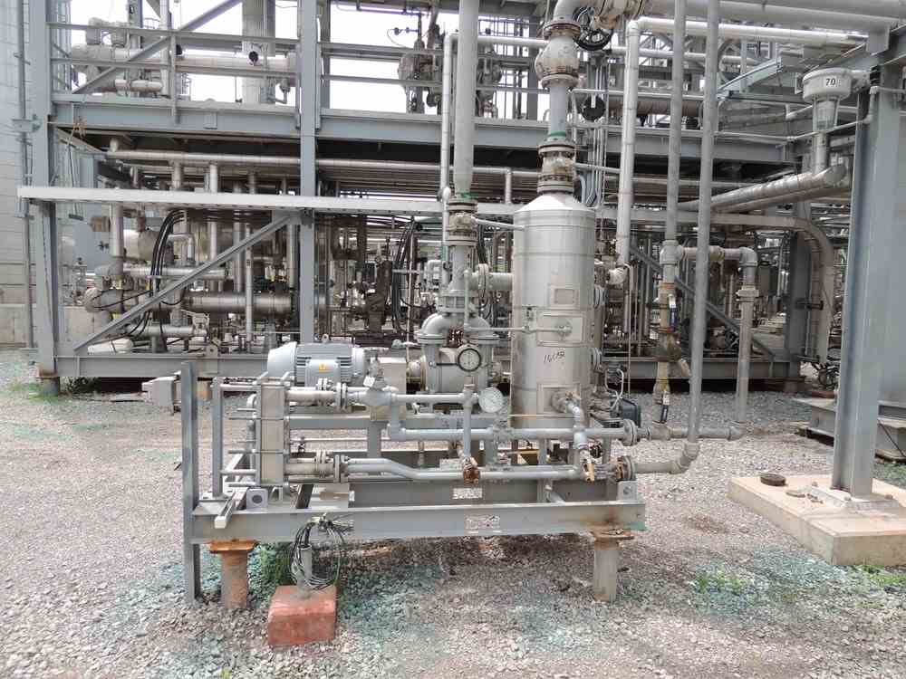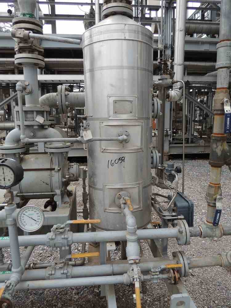 Used 66.6 SCFM Dekker 316 Stainless Steel Vacuum System Package. Model #DVW0453KF1-20. Weight flow 158 lbs./hr. Barometric pressure 14.1 psia. Inlet pressure -12.1 psig@ 160 F. Discharge pressure 2 psig@ 134 F. Drive rated 25 HP @ 1750 RPM; 460 volts. Serial #25926. Weight 2,750 lbs.