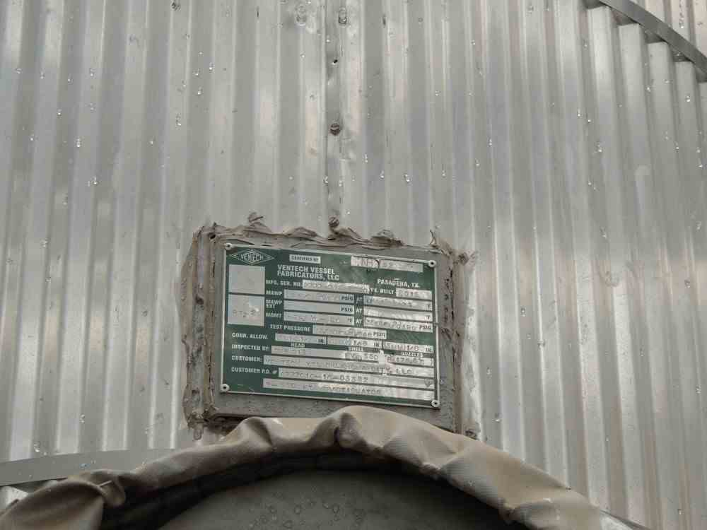 Used 30" Ventech Packed Carbon Steel Fractionation Column. 30"D x 27'2" T/T. Shell Rated MAWP 499PSIG @475F. Skirt Mounted. Weight 10900 lbs. Serial # D8000-032-T550. National Board #52. Built 2015.
