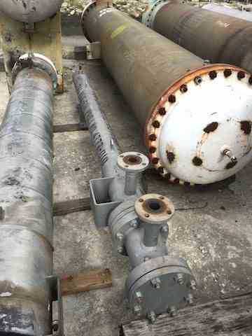 Used 11 Sq Ft Doyle and Roth Carbon Steel Shell and Tube Heat Exchanger. (8) .75"OS x 84"L tubes rated 120PSI/FV@160F. Shell rated 100PSI/FV @ 140F. Approximately 23" OAH x 108" OAL. Weight 465 lbs. Serial #S2774. National Board #21568. Built 2015. Used as Naptha Cooler.