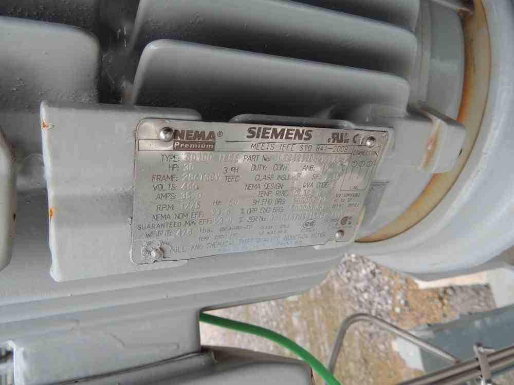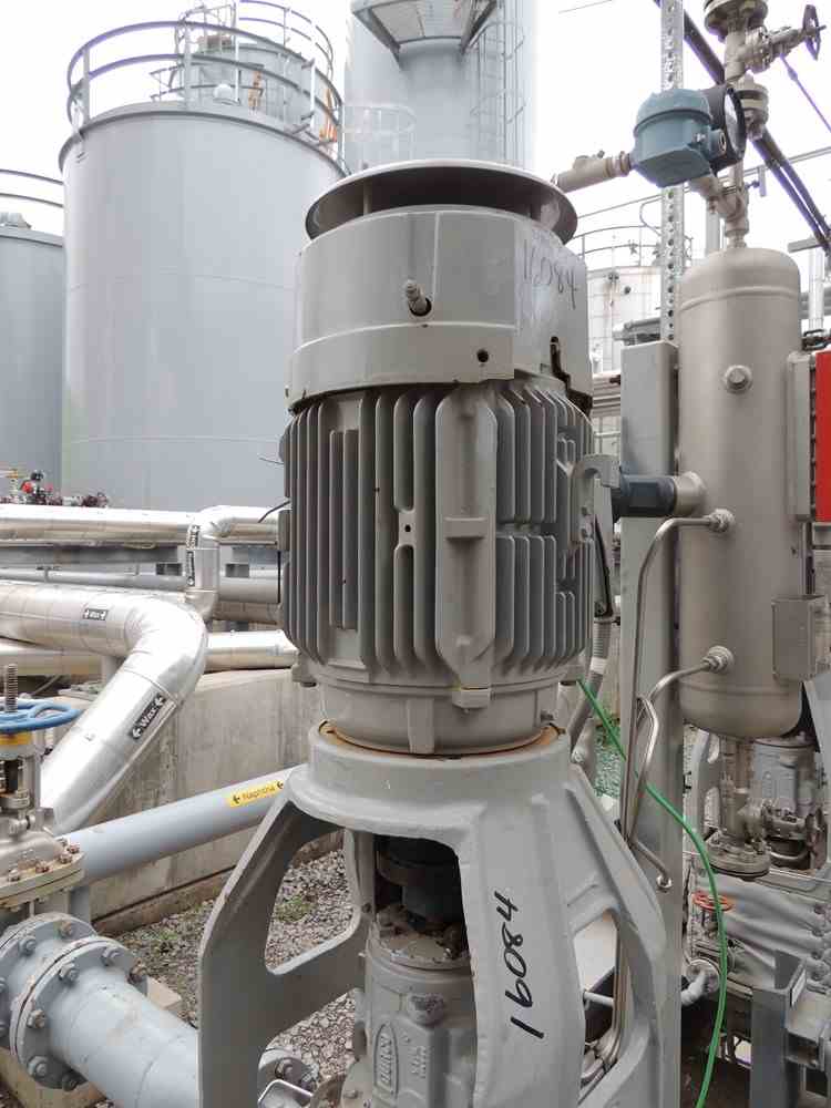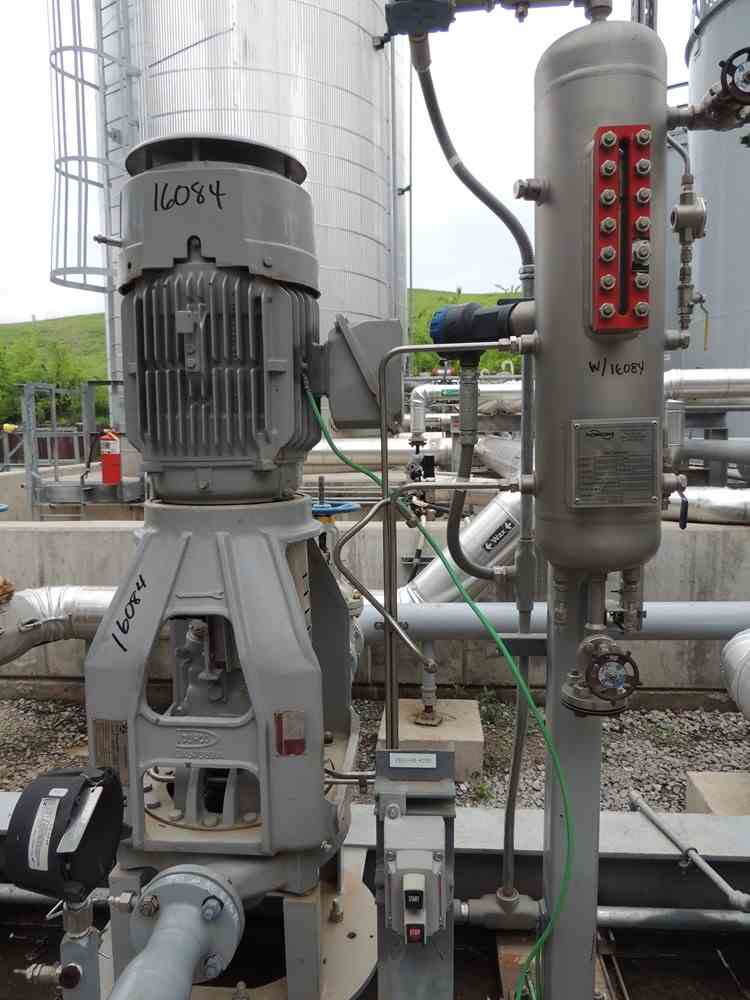 Used 30 HP Durco Mk III vertical centrifugal pump. Size 2K4x3V-13RV. 338 GPM @1750RPM. Serial #1175437CHP0003A.