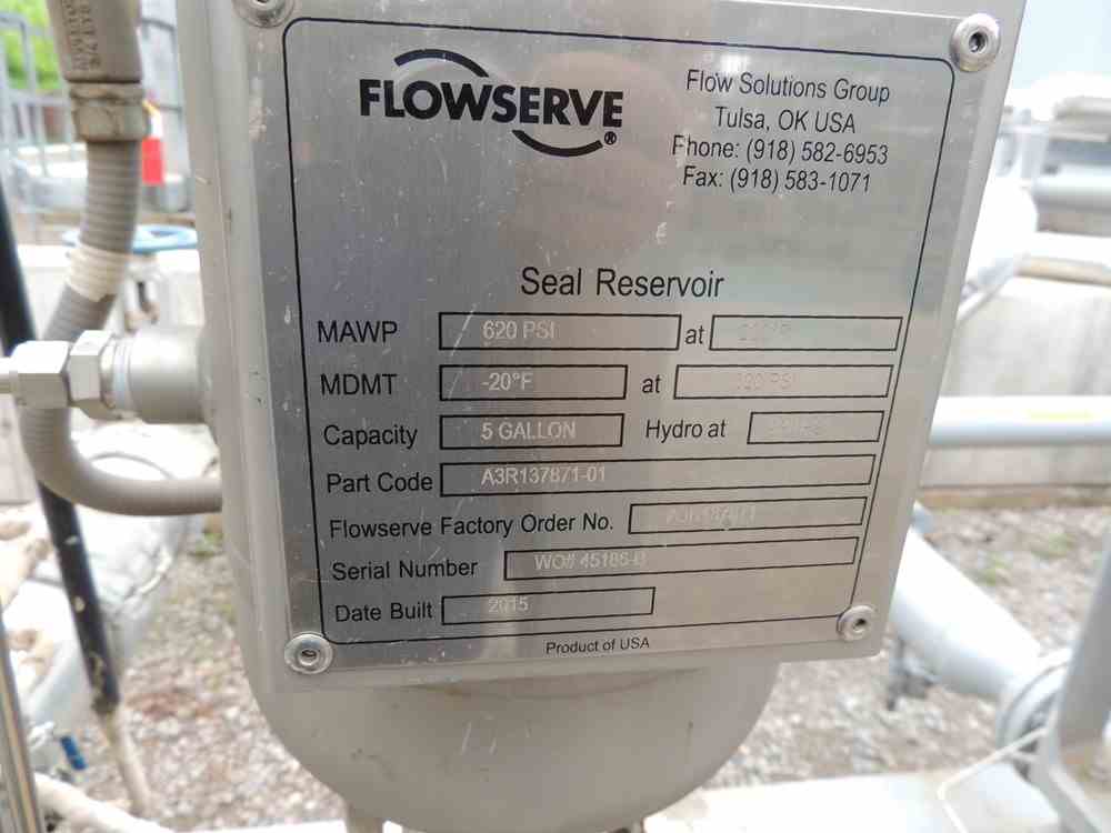 Used 30 HP Durco Mk III vertical centrifugal pump. Size 2K4x3V-13RV. 338 GPM @1750RPM. Serial #1175437CHP004A. Built 2015.