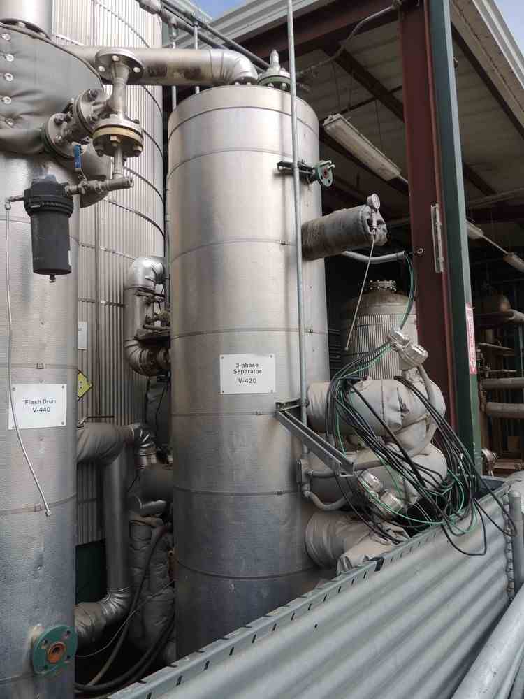 Used 362 Gallon Carbon Steel Pressure Vessel. Rated 480PSI@ 200F. Dims 2'6"Dia x 8'T/T. National board Stamped. Dish top and bottom. Skirt mounted. Built 2009. Previous use 3-phase separator vessel. Weight 2500 lbs