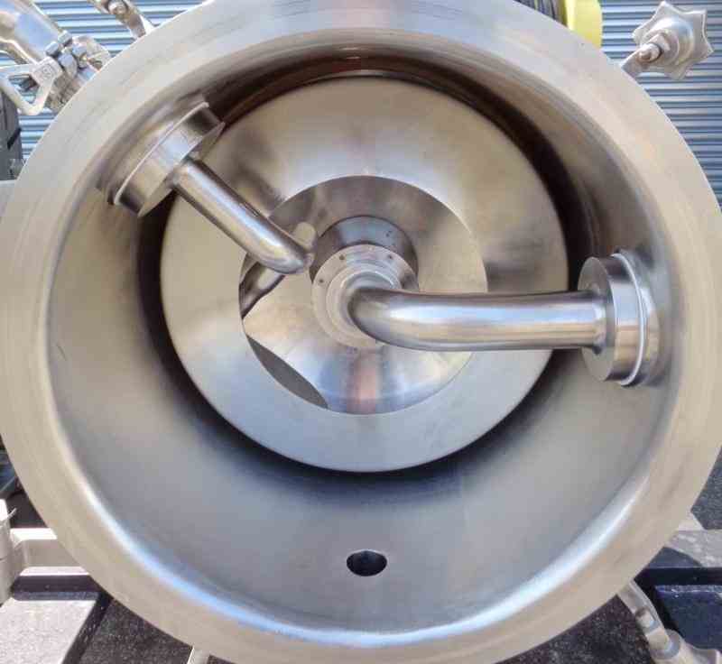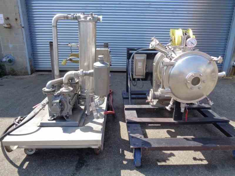 Used Cornell 16" Stainless Steel Versator (Deaerator), Model D-16. This unit has a 7.5 HP Reeves variable speed drive, with portable unitized base. There is a secondary portable unitized vacuum skid with 10HP Sihi vacuum pump and receiver. Catalog rated at 1-20 gallons per minute.
