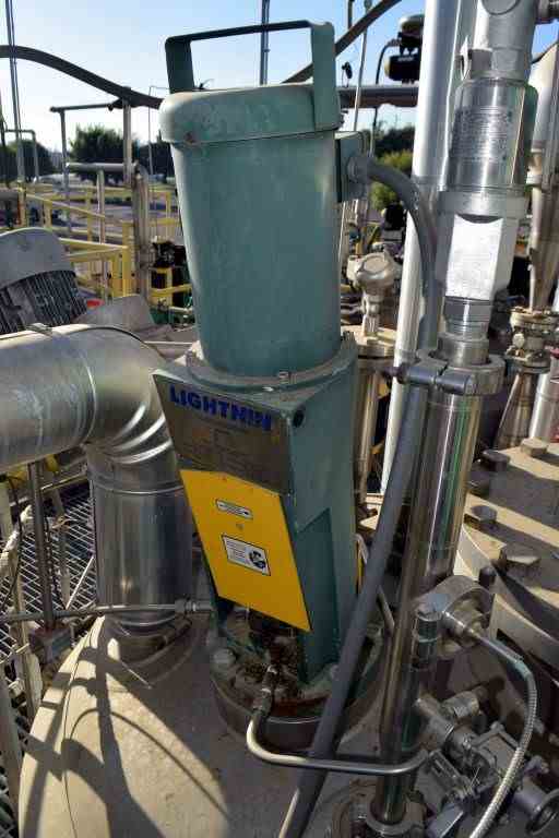 Used 400 Gallon A&B Process Systems 304L Stainless Steel Reactor. Vertical. 54" Diameter x 24" straight side, Dished top, jacketed hemispherical bottom. Internal rated 150 psi at -20 to 425 degrees F., 304L stainless steel jacket rated 150 psi at -20 to 425 degrees F. (2) Off center top entering angled agitators. (1) Lightnin Model X6S150, Serial # 2719729, driven by a 1.5 hp, 3/60/208-230/460 volt, 1725 rpm motor, (1) anchor agitator with scrapers, driven by a 10 hp, 3/60/230/460 volt, 1770 rpm gear motor, ratio 40.80 to 1. Top 18" man way with davit arm cover, 4" center bottom outlet. Mounted on (3) side lugs. Serial # 1118160301A, National Board # 1605. Built 2012.