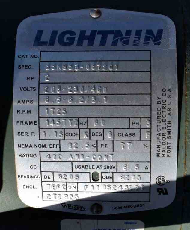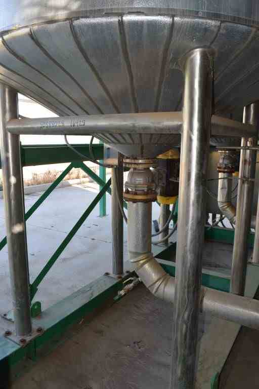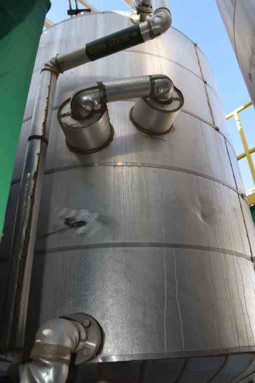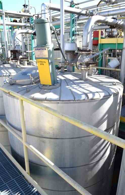 Andy J. Egan Jacketed Tank, Approximate 1500 Gallon, 316L Stainless Steel, Vertical. Approximate 72” diameter x 84” straight side, slight coned top, cone bottom. Jacketed, no rating. Off center top entering angled Lightnin agitator, model X6S200, serial# 2636797. Approximate 1-1/2” diameter shaft with (1) 3 blade turbine, (1) 3 blade prop, driven by a 2hp, 3/60/208-230/460 volt, 1725 rpm motor. (2) Spray balls. Openings top 2”, (2) 3”, (2) 4”, 6” drive, sight glass, 24" man way with cover, side (3) 3”, 4” center bottom outlet. Mounted on (4) 304 stainless steel legs. Built 2011.