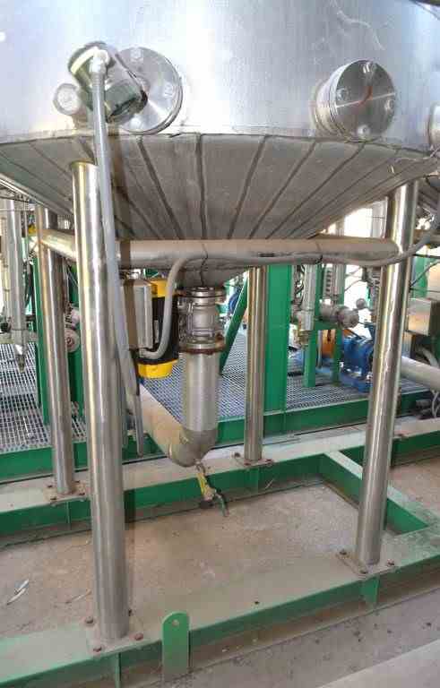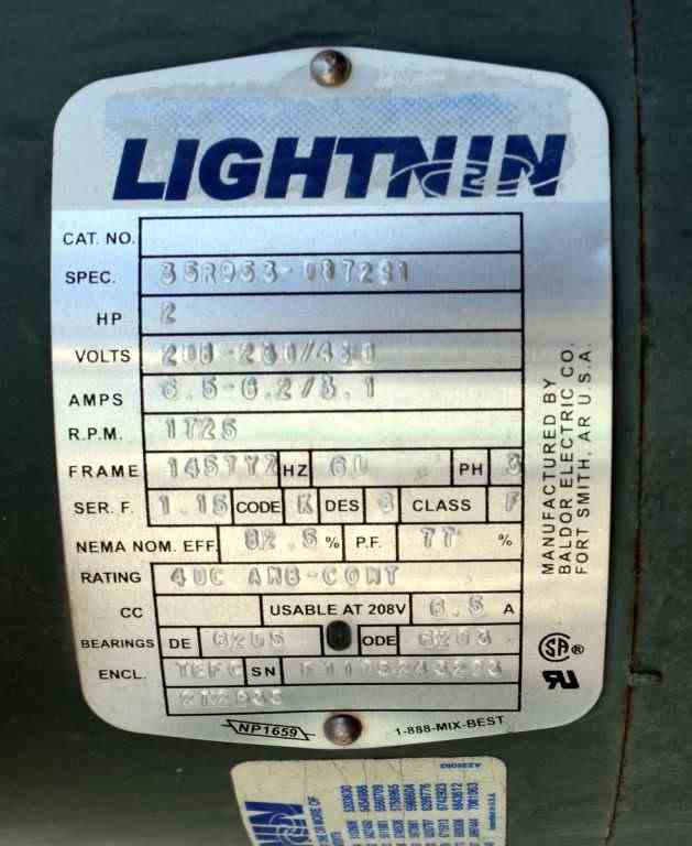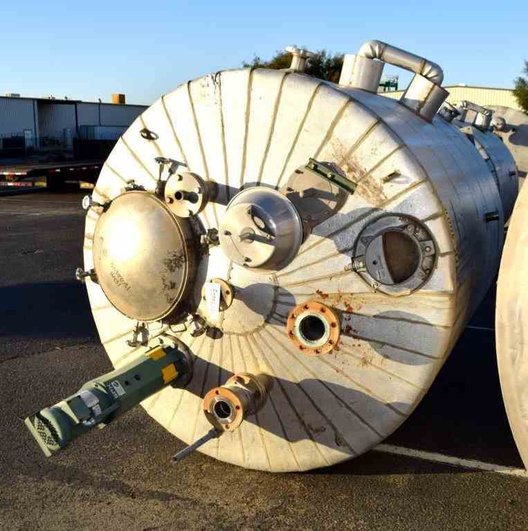 Used 1500 Gallon Andy J. Egan 316L Stainless Steel Jacketed Tank. Vertical. Approximate 72" diameter x 84" straight side, slight coned top, cone bottom. Jacketed, no rating. Off center top entering angled Lightnin agitator, Model X6S200, Serial # 2636798. Approximate 1-1/2" diameter shaft with (1) 3 blade turbine, (1) 3 blade prop, driven by a 2 hp, 3/60/208-230/460 volt, 1725 rpm motor. (2) Spray balls. Openings top 2", (2) 3", (2) 4", 6" drive, sight glass, 24" man way with cover, side (3) 3", 4" center bottom outlet. Mounted on (4) 304 stainless steel legs. Built 2011.