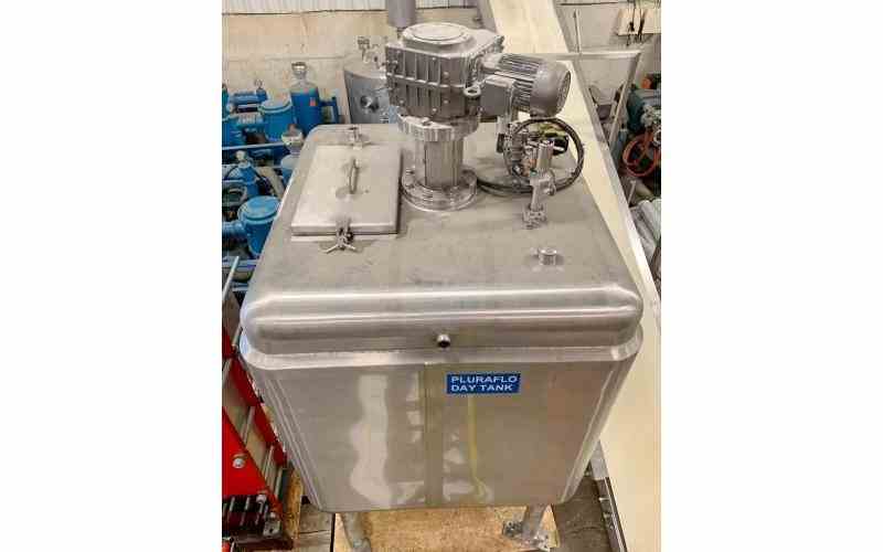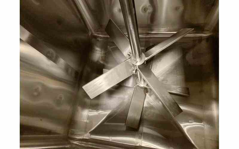 MOTOR: 1.5 HP, 575 VOLT, OUTPUT RPM: 16. TANK IS ON FOUR STAINLESS STEEL LEGS. OVERALL HEIGHT WITH MIXER: 96". PREVIOUS USE: FOOD APPLICATION.