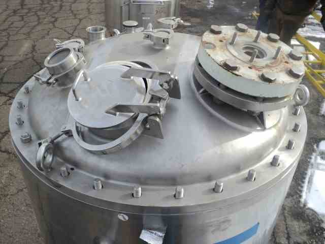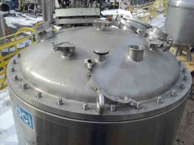 Used 350 liter (92 Gal) DCI Reactor Body, 316 stainless steel construction, 30" diameter x 27" straight side, removable dish top, dish bottom, rated 65 PSI and full vacuum at 430 F internal, 304 stainless steel jacketed for 65 PSI and full vacuum at 430 F, 8" agitator nozzle, 6" hand hole, (2) 2.5" sight glasses, 1.5", (3) 1" top nozzles, 1.5" center bottom outlet, on legs, Serial# 86-PH33967, National Board# 857, built 1986.