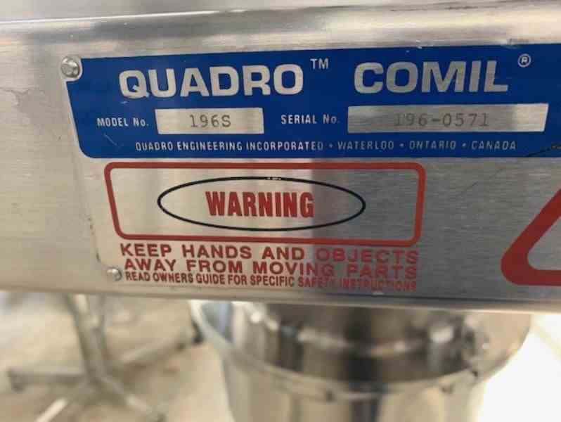 One (1) used Quadro Comil Model 196-S. this unit features stainless steel construction, VFD controller, 10 HP 208/230/460 volt motor, mounted on wheels. Discharge height is approximately 32".