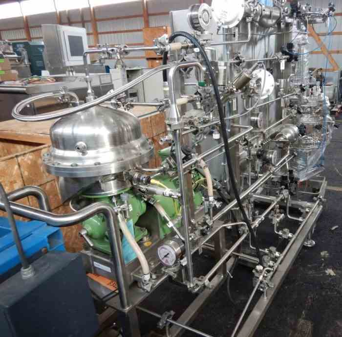 Used Westfalia CSA1-06-475 Bio System Disc Centrifuge. Serial #1721-406. Built 2001. Skid mounted with controls and Precision stainless Pressure vessel. National Board #9183.