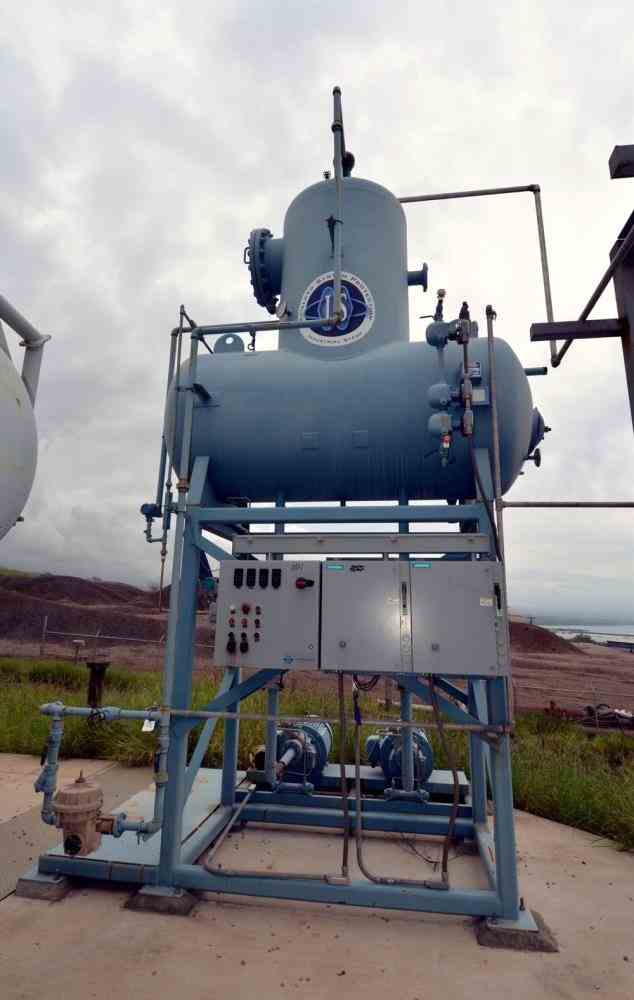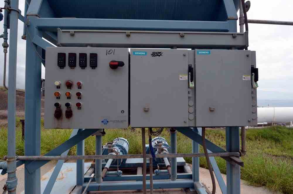 Used 50HP Industrial Steam Spray-Tray Deaerator. Model 6ST5. Steam Outout 19,014. (1) Wheeler pressure tank, Rated 50 psi @274F. Serial# 11178, National Board# 15235. (2) 50hp Sundyne Sunflo pumps, (1) overflow tank, and a control panel. Serial# 24266A&B, built 2011.