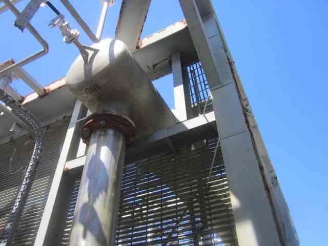 Used 438 SQ FT Praj Industries vertical 304L Stainless Steel shell & tube heat exchanger. 33" ID x 16'8" overall length (170) 1" x 9' tubes, shell 25psi@275F, tube 10psiFV@212F, single pass both sides. National Board #15. Serial #06D058-H1463B. Built 2008. Last use Side Stripper Reboiler - steam heated.