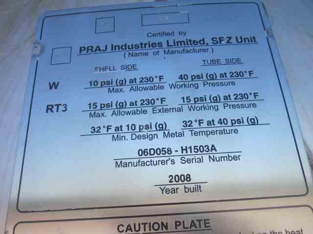 Home » Equipment » Heat Exchangers » Shell & Tube - Stainless Steel » 7782 Sq Ft Praj Industries Stainless Steel Shell & Tube Heat Exchanger