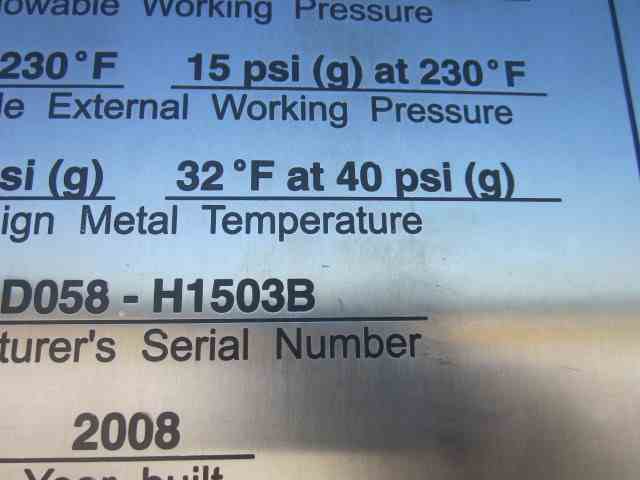 Unused 7782 Sq Ft 316 SS Shell and Tube Heat Exchanger. Mfg Praj Industries. Shell MAWP 10PSI@266F. (1100) 1.5" OD 4-pass Tubes MAWP 40 PSI@230F. 6'OD x 27'8"OAL. (2) Saddle mounted. National Board #23. Serial #06D058-H1503B. Built 2008.