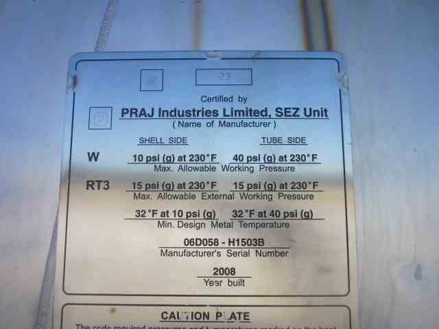 Home » Equipment » Heat Exchangers » Shell & Tube - Stainless Steel » 7782 Sq Ft Praj Industries Stainless Steel Shell & Tube Heat Exchanger