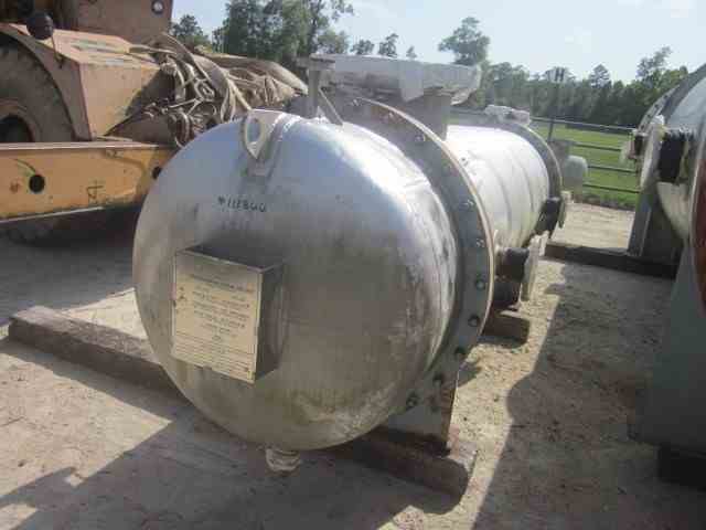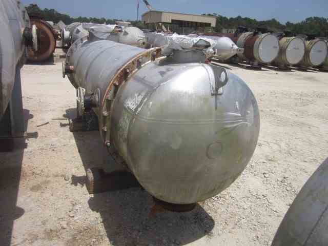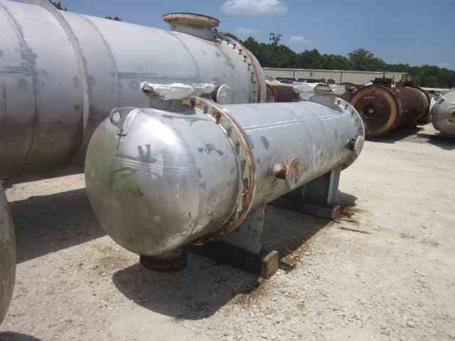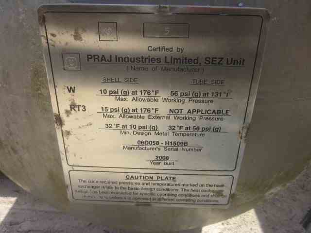 Unused 990 Sq Ft 304L Stainless Steel Shell and Tube Heat Exchanger. Mfg Praj Industries. 304L SS Shell MAWP 10 PSI@176F. (440) 1"OD 304 SS Tubes MAWP 56 PSI@131F. (2) Saddle Mounted. Overall 37.5"D x 9'10"L. National Board #5. Serial #06D058-H1509B. Built 2008. Use: Surface Condenser - II