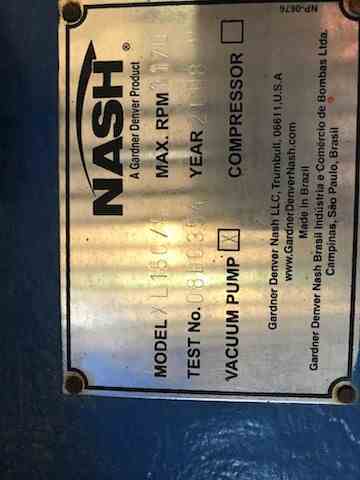 Unused 800CFM Nash 6x4 Liquid Ring Vacuum Pump. Model XL150/5. 316 Stainless Steel with Wetted parts CF8. 100HP. 1170RPM. Built 2008. Last use Distillation Vacuum Pump with Motor.