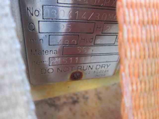 Unused 80GPM Flowserve 316 Stainless Steel Horizontal Centrifugal pump. Model 65-40CPX125. 10HP, 3500RPM. Built 2008.