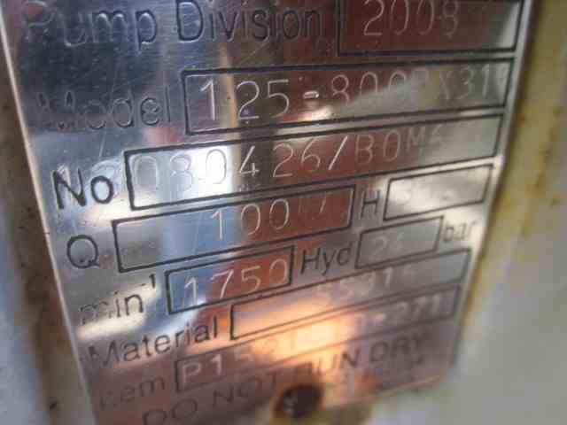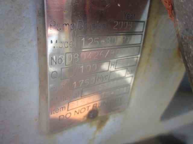 Unused 440 GPM Flowserve 316 SS Horizontal Centrifugal Pump. Model 125-80CPX315. 50HP, 1775. Built 2008.