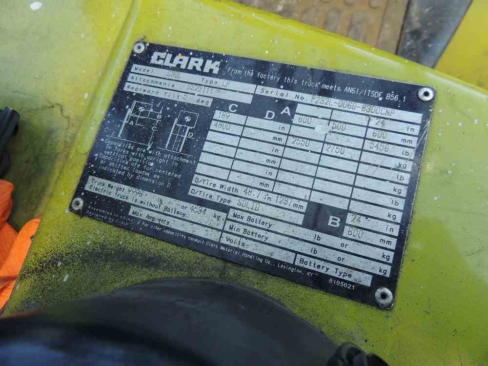 Used Clark C30L Fork lift. Serial #P232L-0060-8300CNF. 2150 Hrs