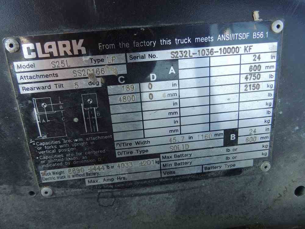 Home » Equipment » Material Handling » Fork Truck » Clark S25L Fork Truck