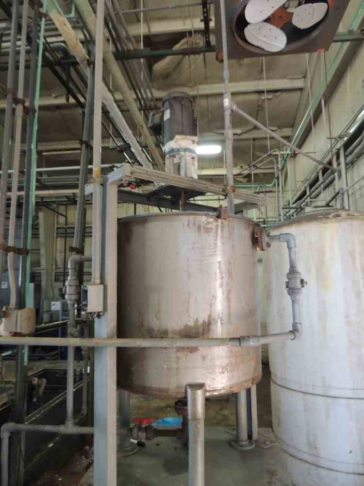 Used 100 Gallon Stainless Steel Mix tank. 1HP Agitator. (4) Leg mounted.