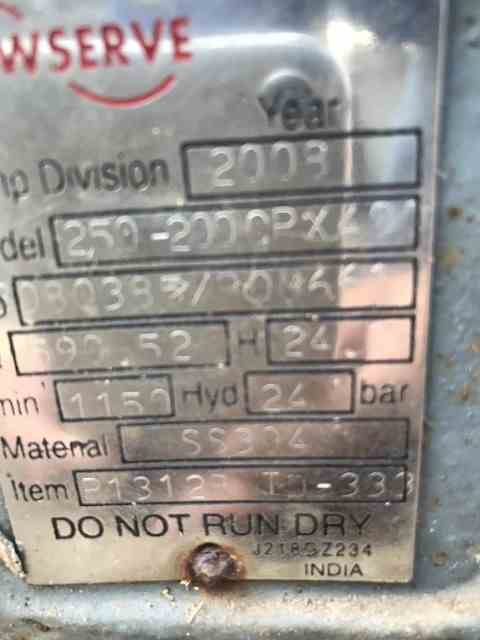 Home » Equipment » Pumps » Centrifugal - Stainless Steel » Flowserve 2600 GPM Stainless Steel Centrifugal Pump