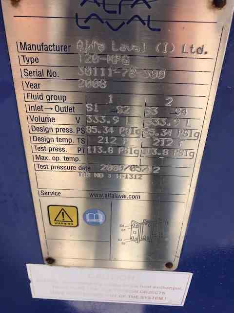 Home » Equipment » Heat Exchangers » Plate - Stainless Steel » 429 Sq Ft Alfa Laval Stainless Steel Plate Heat Exchanger