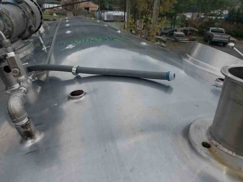Used 5000 gallon insulated vertical 304 Stainless Steel tank. Dimensions 8’ dia x 12’ straight side (14’ 6” OAH). Sloped bottom with 3” side discharge, 3” top infeed, Bottom front manway, bottom side prop mixer 1 HP 230-460V/3/60. CIP. Last use food. (Qty 2 available)