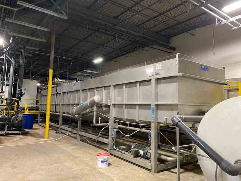 UNUSED FRC Systems PWL-120 Series DAF 304 Stainless Steel Dissolved Air Flotation System with Flocculator. Peak Flow Rate up to 150 GPM. Surface Area 244 sq ft. Includes 304 SS skimmer flights, driven by a 1hp, 3/60/460 volt. Bottom 304 SS Auger drive by a .33 HP motor. Whitewater aeration system with (1) 316 SS 160GPM 20HP Pump. 304 SS air dissolving tube. Includes Touch panel PLC controls, manuals. Dimensions 43'6"L x 9'6"W x 9'6"H. 13760 Lbs Serial #17012559. Built 2018.