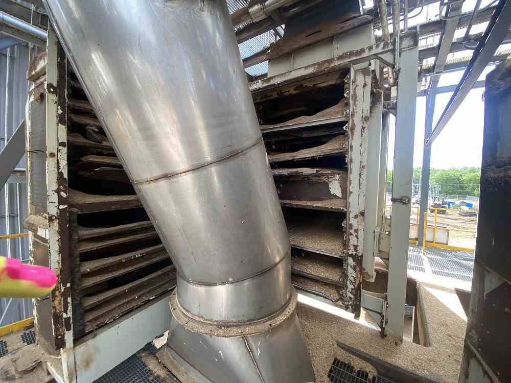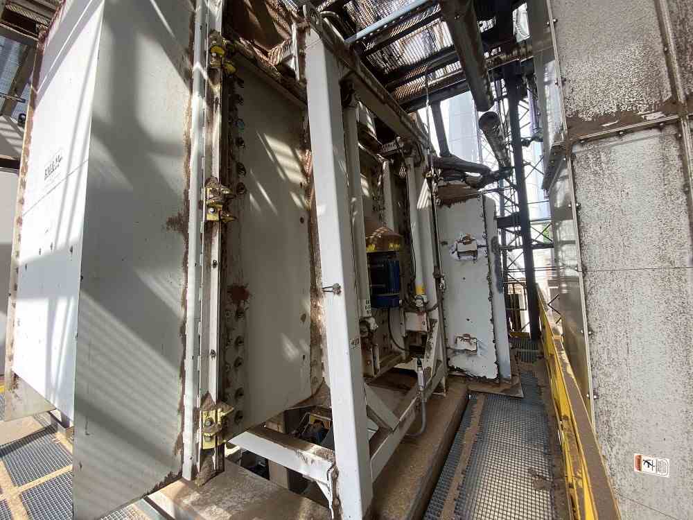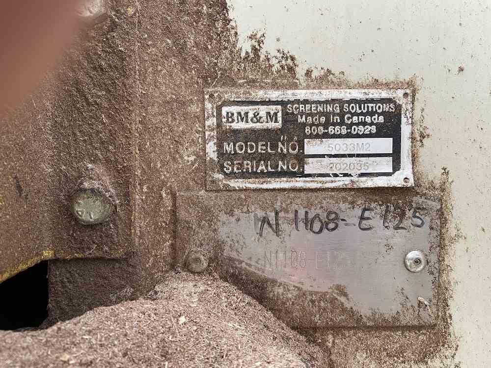 Used 57" Wide Multi Screen Rectangular Screener. Manufactured by BM&M. Model 5033M2. Super-Deck M. First level: (12) 10 Mesh 57" x 60" T304 SS screens. Second level: (12) 20 Mesh 57" x 60" T304 SS Screens. 5 degree slope. Infeed and Outfeed. Rubble collector. 6" Dust ports. Frame Mounted. Serial #202035.