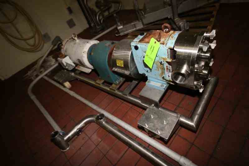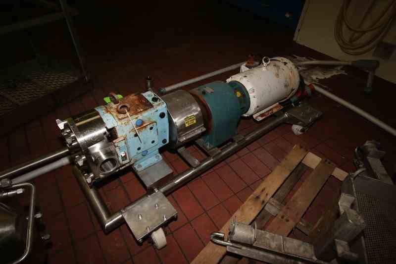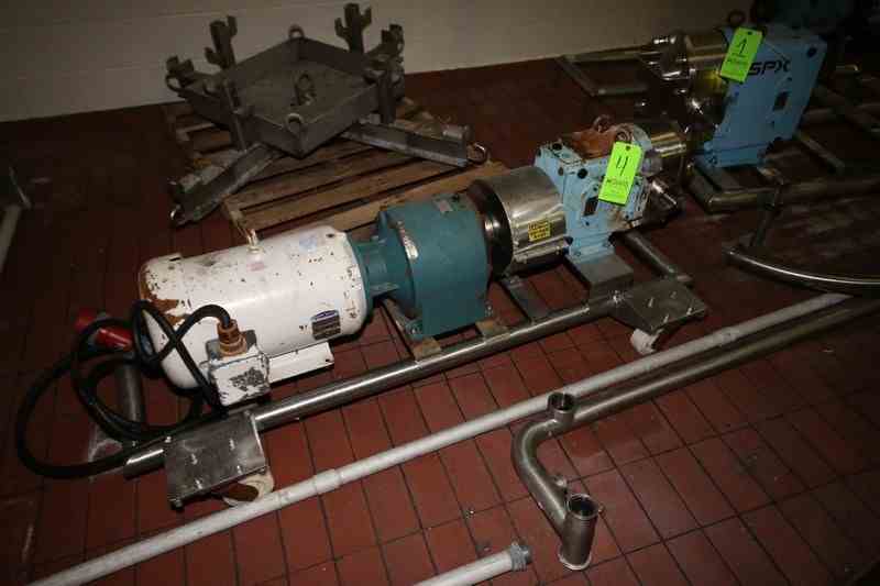 2011 SPX 20 hp Positive Displacement Pump, M/N 130 U 1, S/N 1000002616264, with Aprox. 3" Clamp Type Inlet/Outlet, Mounted on S/S Portable Frame, with Baldor 1765 RPM Motor, 203-230/460 Volts, 3 Phase (LOCATED IN CHAMPAIGN, IL)