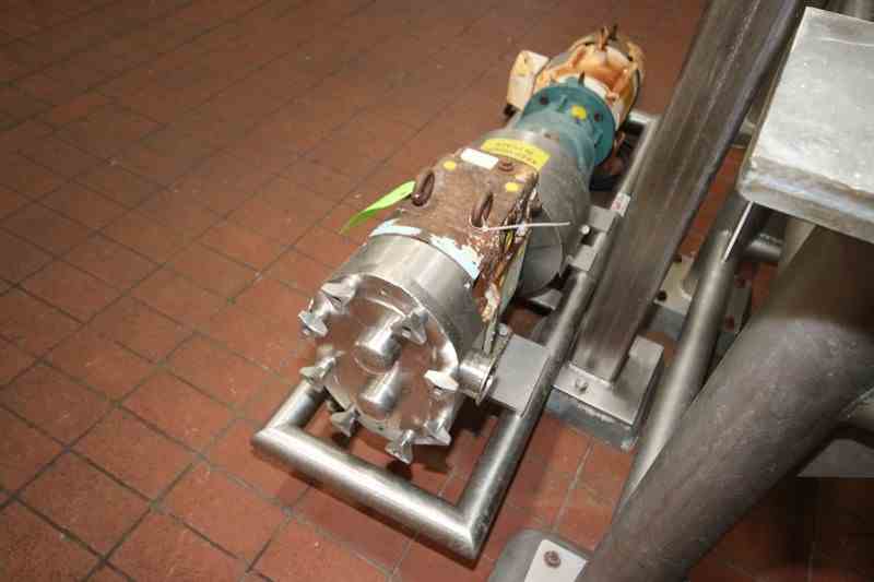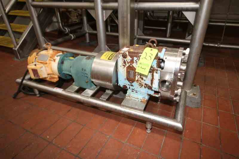 Waukesha Cherry Burrell 5 hp Positive Displacement Pump, M/N 060, S/N 17826396, with 2-1/2" Clamp Type Inlet/Outlet, Mounted on S/S Frame (LOCATED IN CHAMPAIGN, IL)