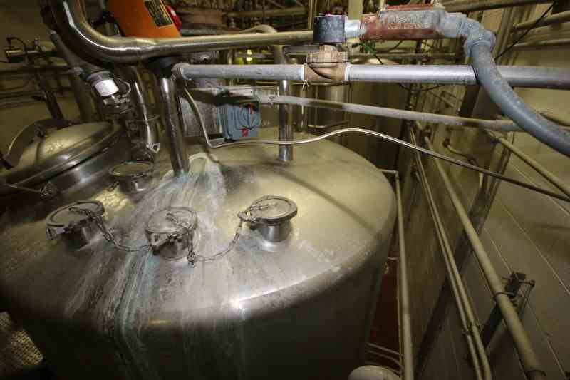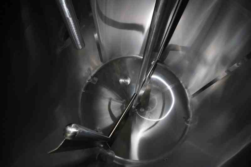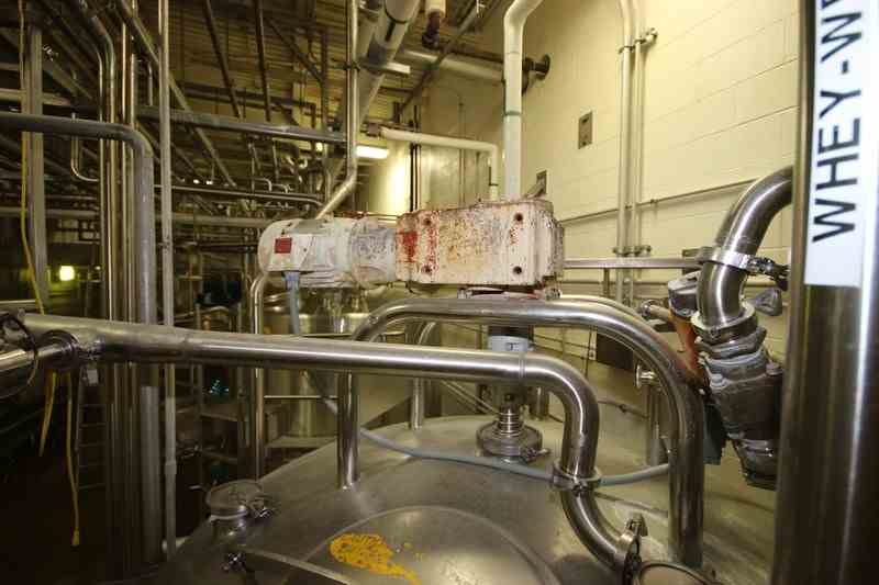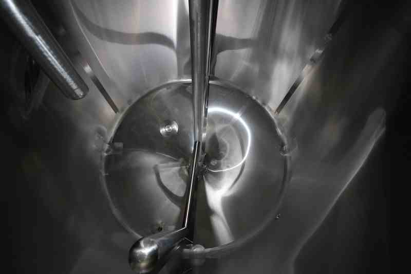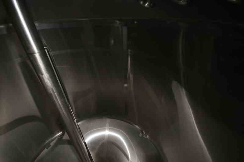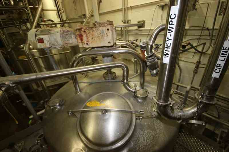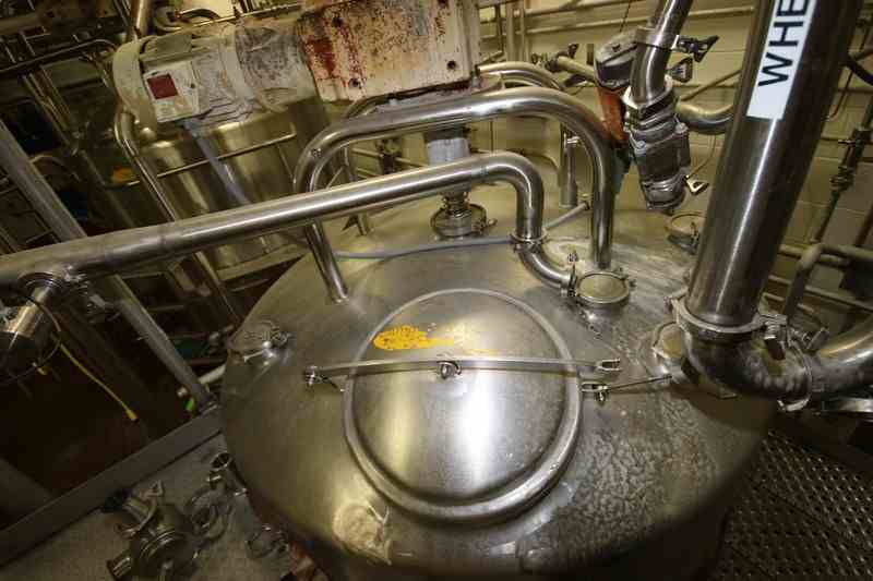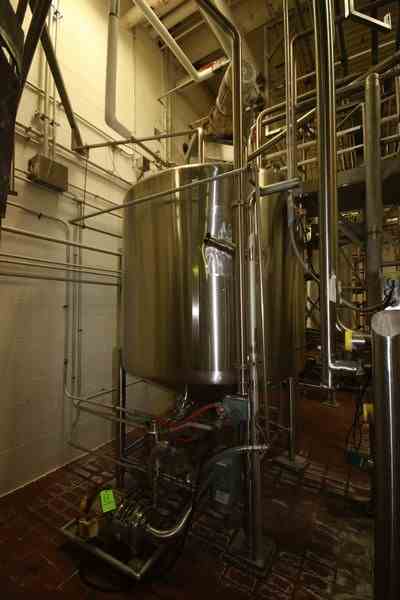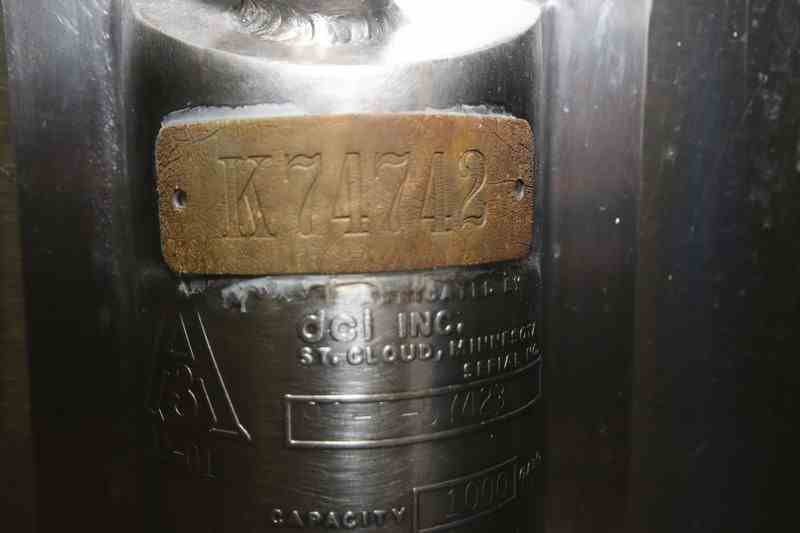 DCI 1,000 Gal. S/S Single Wall Cone Bottom Tank, S/N 98-D-57423, with Reliance 3 hp Top Mounted Agitation Motor, with S/S Side Sweep Agitation, Dome Top, Oveall Height: Aprox. 150" Tall, with S/S Side Platform, with S/S Hand Rails & Grating (SEMI BULK 3)