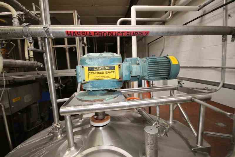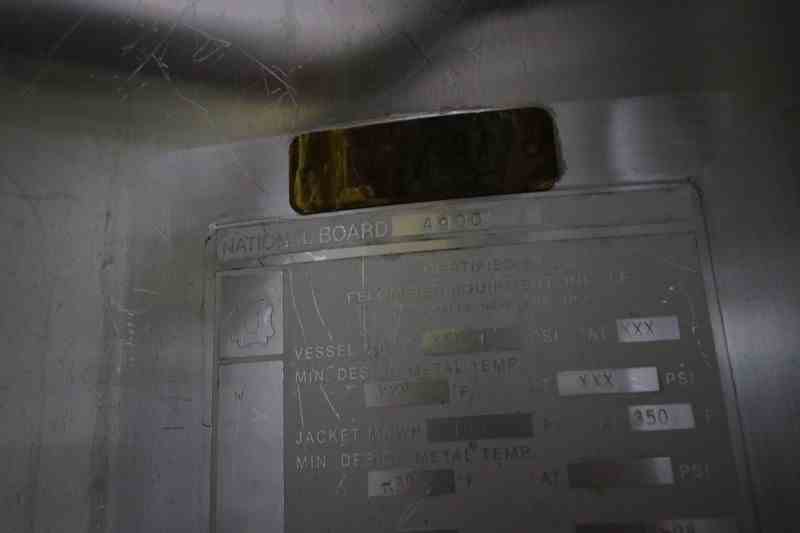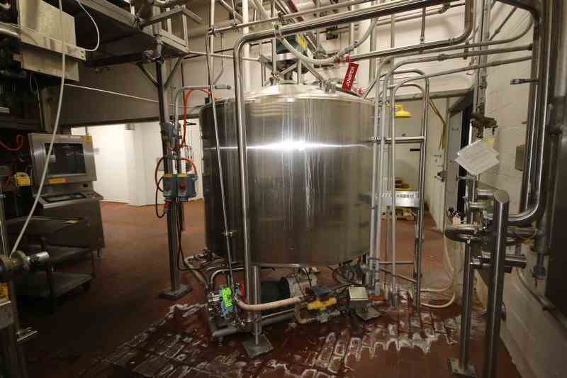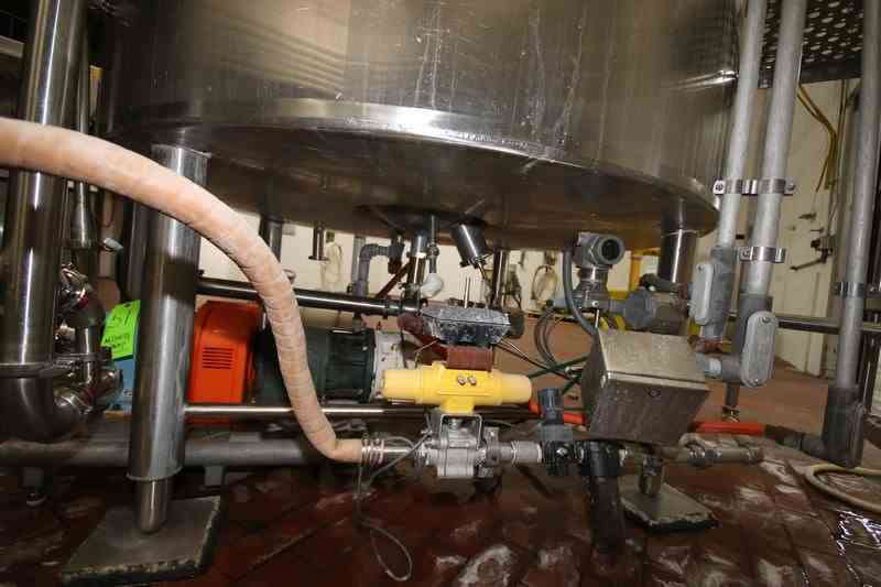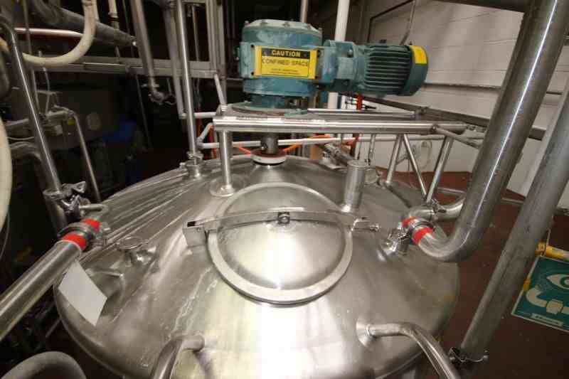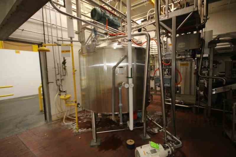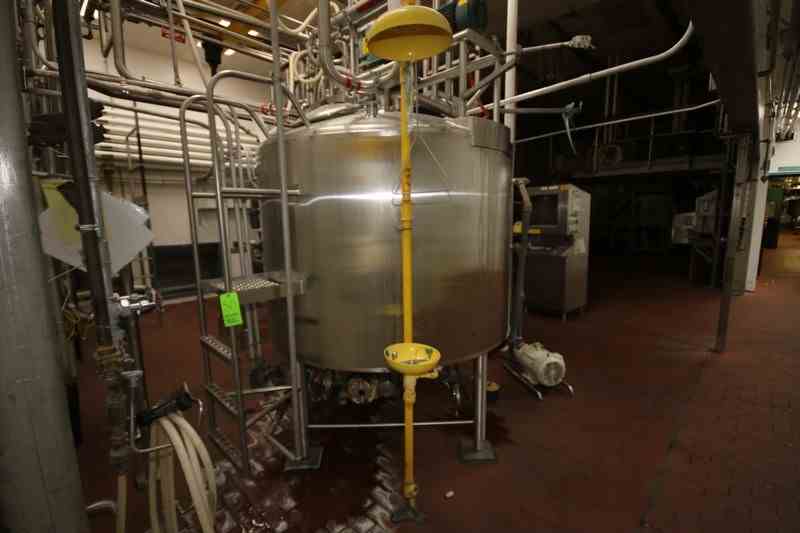 Feldmeier Aprox. 600 Gal. S/S Processor, S/N E-495-98, Internal Cone Bottom with External Flat Bottom, Nat'L Board #: 4900, Jacket MAWP 100 PSI @ 350 F, Min. Design Metal Temp.: -20 F @ 100 F, with Top Mounted Agitation Motor, with S/S Sweep Scrape Agitation, with Dual CIP Spray Balls, Internal Tank Dims.: Aprox. 40" Tall x 68" Dia, Mounted on S/S Legs (LOCATED IN CHAMPAIGN, IL)