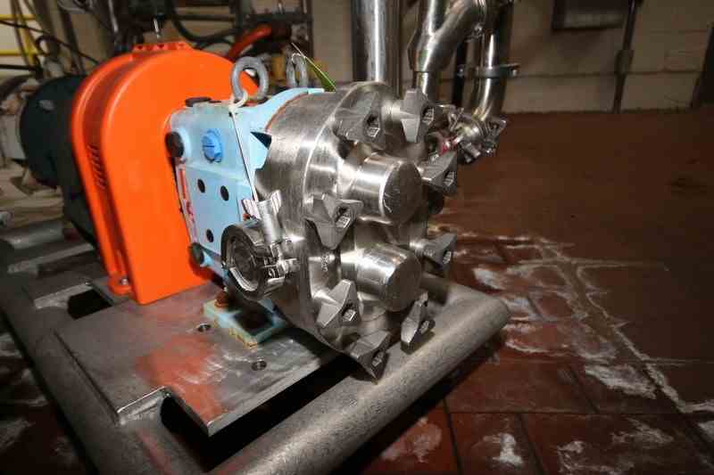 SPX 7.5 hp Positive Displacement Pump, M/N G3001, S/N 3024495R2-6, with Aprox. 2" Clamp Type Inlet/Outlet, Mounted on S/S Frame (LOCATED IN CHAMPAIGN, IL)