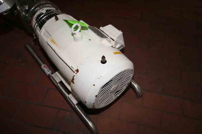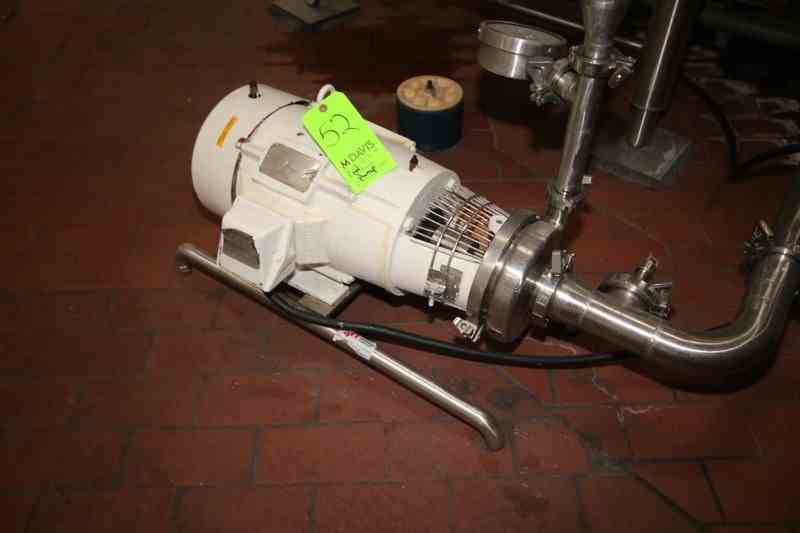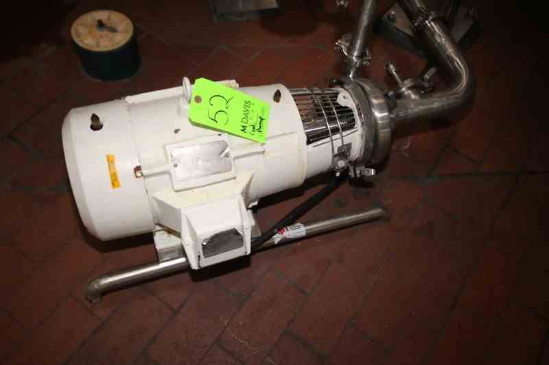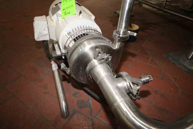 Puriti 7.5 hp Centrifugal Pump, S/N 23094998, with Reliance 3510 RPM Motor, with Aprox. 3" x 1-1/2" Clamp Type Inlet/Outlet, Mounted on S/S Frame (LOCATED IN CHAMPAIGN, IL)