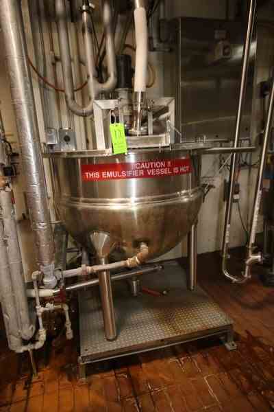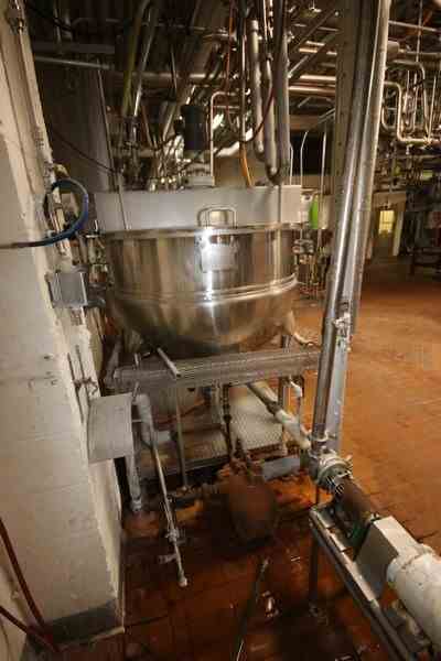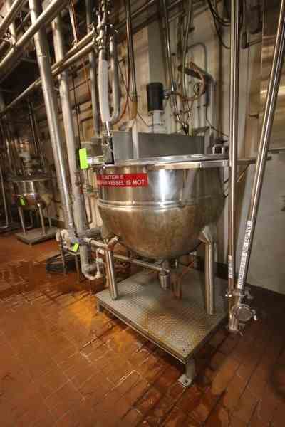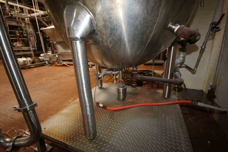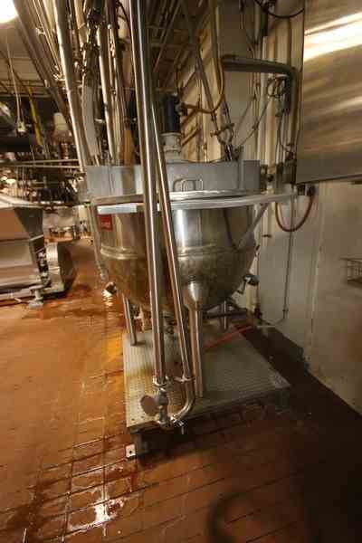 Hamilton 200 Gal. S/S Kettle, Style SA, S/N D2377-1, Max. Work Press. 125 PSI @ 343 F, Hyd. Test Press 215 PSI, Min. Design Press. -20 F @ 125 PSI, Mounted on S/S Platform with Load Cells & Fairbanks Digitial Read Out, with 3/4 hp Centrifugal Pump, 1725 RPM Motor, with S/S Head, Mounted on S/S Frame (LOCATED IN CHAMPAIGN, IL)