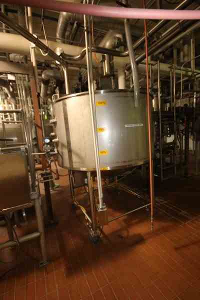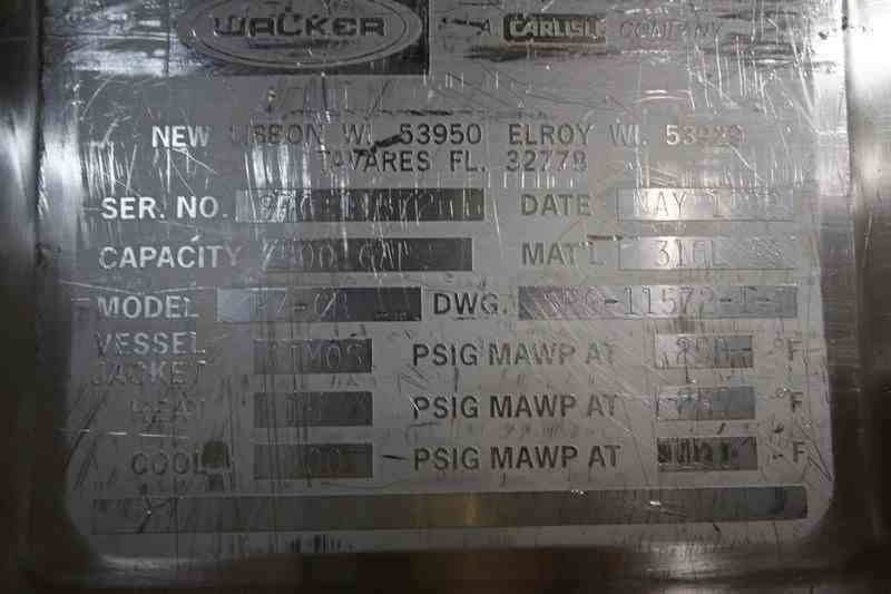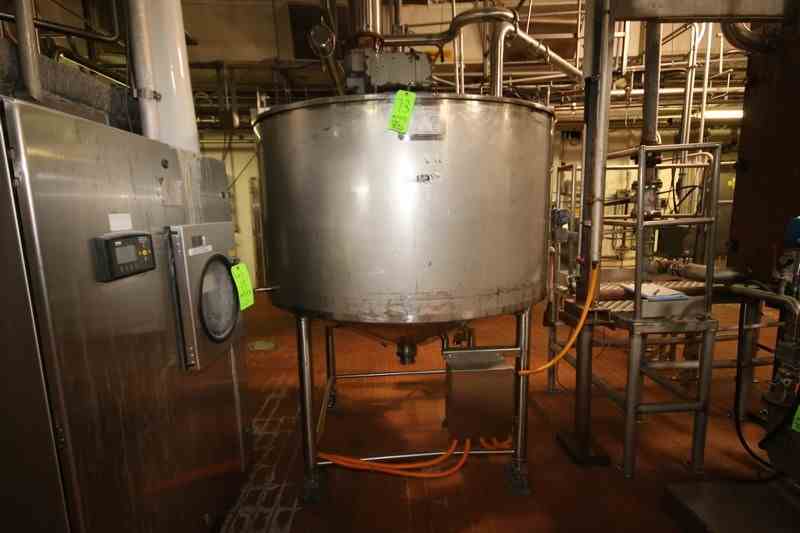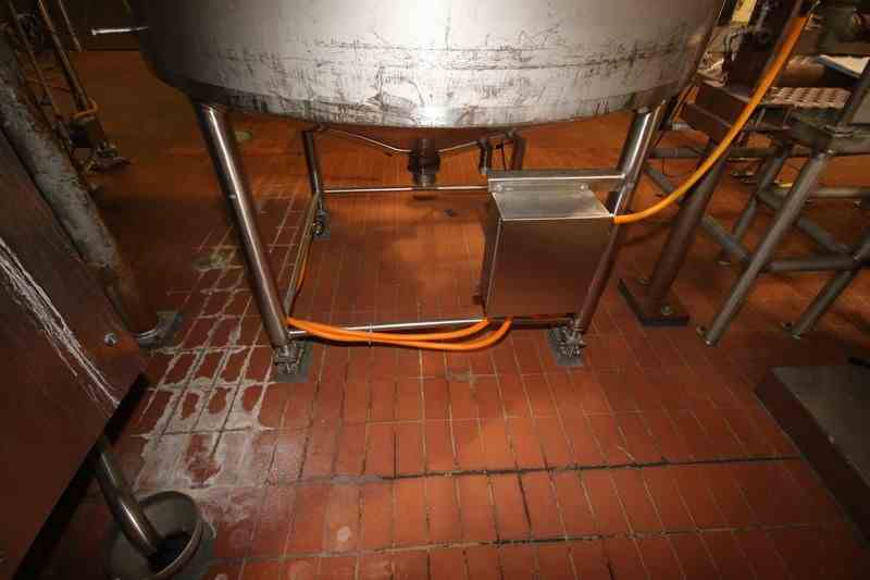 Walker 500 Gal. S/S Processor, M/N PZ-CB, S/N SPG-11572, 316 L S/S, Vessel Jacket ATMOS PSIG MAWP @ 250 F, Heat 15 PSIG MAWP @ 250 F, Cool 100 PSIG MAWP @ 100 F, with Cone Bottom, with Top Mounted S/S Clad Agitation Motor, with S/S Frame Mounted on Load Cells (LOCATED IN CHAMPAIGN, IL)