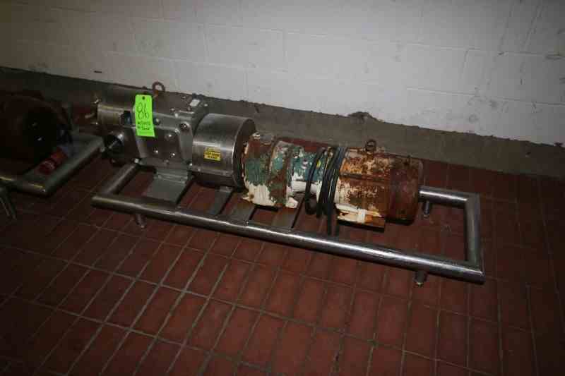 Waukesha Cherry Burrell 5 hp Positive Displacement Pump, M/N 130, S/N 186918 96, with Aprox. 3" Clamp Type Inlet/Outlet, with S/S Head, Mounted on S/S Skid (LOCATED IN CHAMPAIGN, IL)