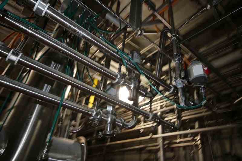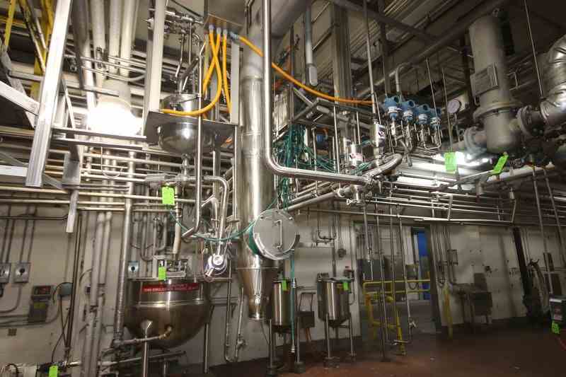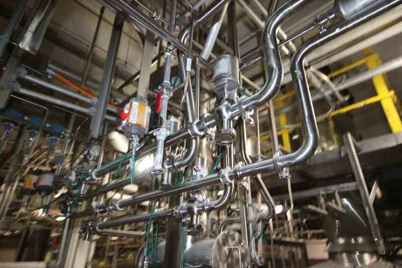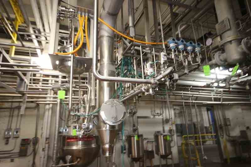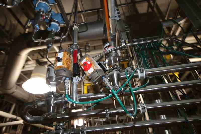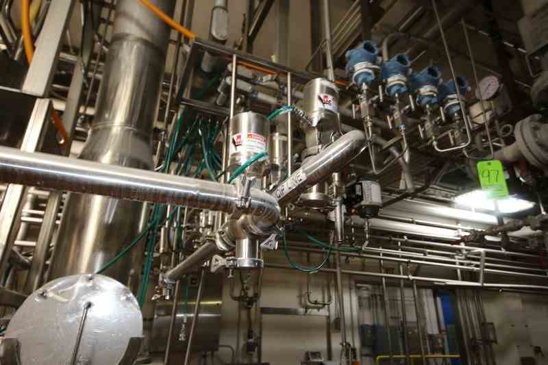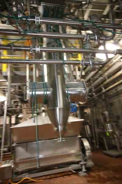 S/S Hopper/Feeder, with Aprox. (7) Clamp Type S/S Air Valves, with Additional S/S Hopper, with (4) Flow Meter Digital Read Outs, with S/S Balance Tank & S/S Chute, Includes S/S Duct Work Back to 1st Horizontal (LOCATED IN CHAMPAIGN, IL)