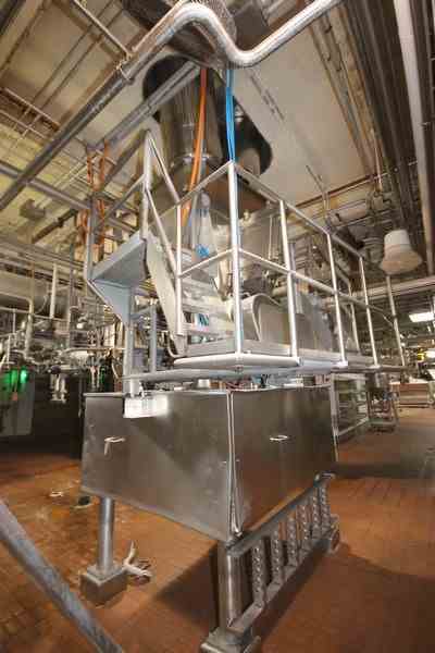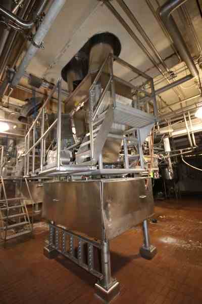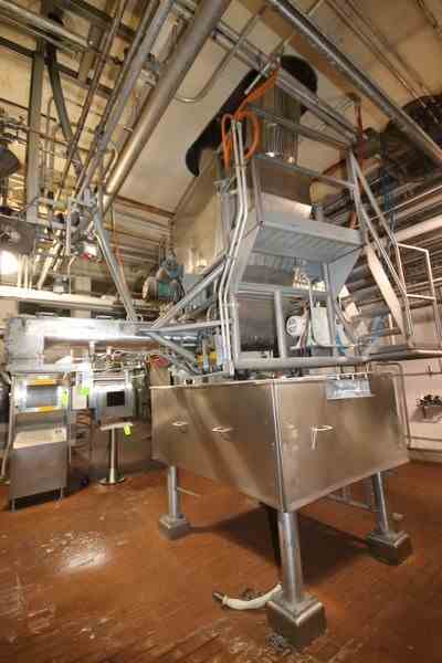 Kraft Foods Rotating Auger Feeder, S/N 2, Job No.: 3324-24 with 5 hp Drive/1765 RPM, with S/S Hopper, Internal Dims.: Aprox. 68-1/2" L x 48" W x 77" Deep, with Aprox. 118" L S/S Auger with Discharge Chute (LOCATED IN CHAMPAIGN, IL)
