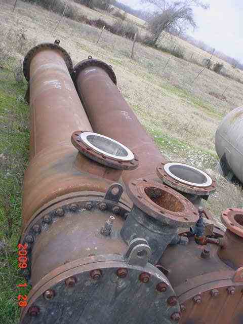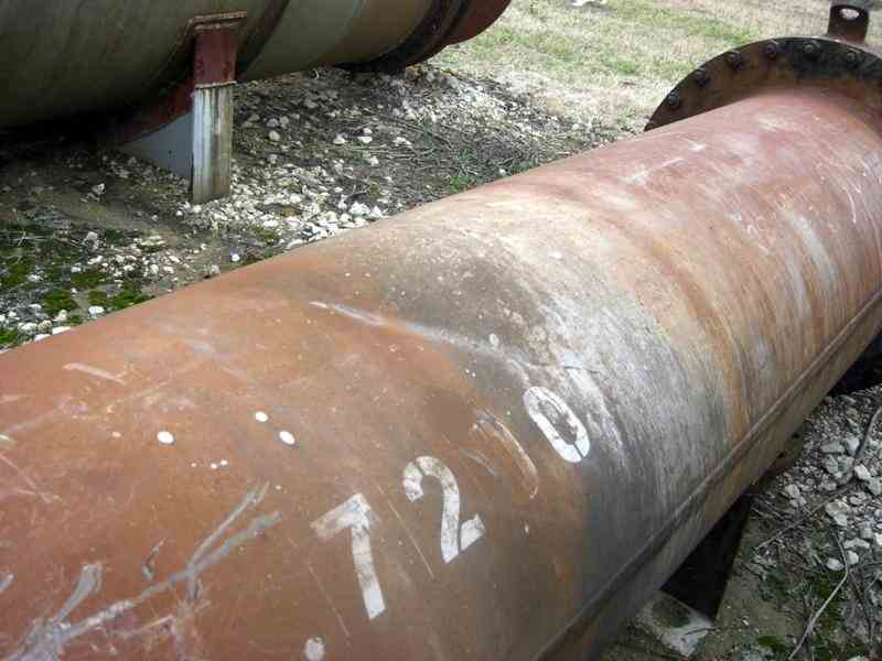 Used 1000 Sq.ft. horizontal Shell and Tube heat exchanger. 304-SS Shell rated 75 PSIG @ 850 deg., 304-SS Tubes rated 75 PSIG @ 650 deg. Shell - 1 pass; Tubes - 2 pass. Shell dia: 22". (324) 3/4 x 16' L tubes. Mfg by Heat Transfer Equipment Co, NB # 250. Type: AES. NOTE: There is a dent in the shell.