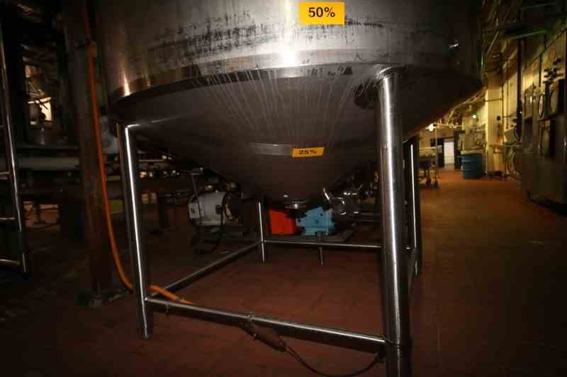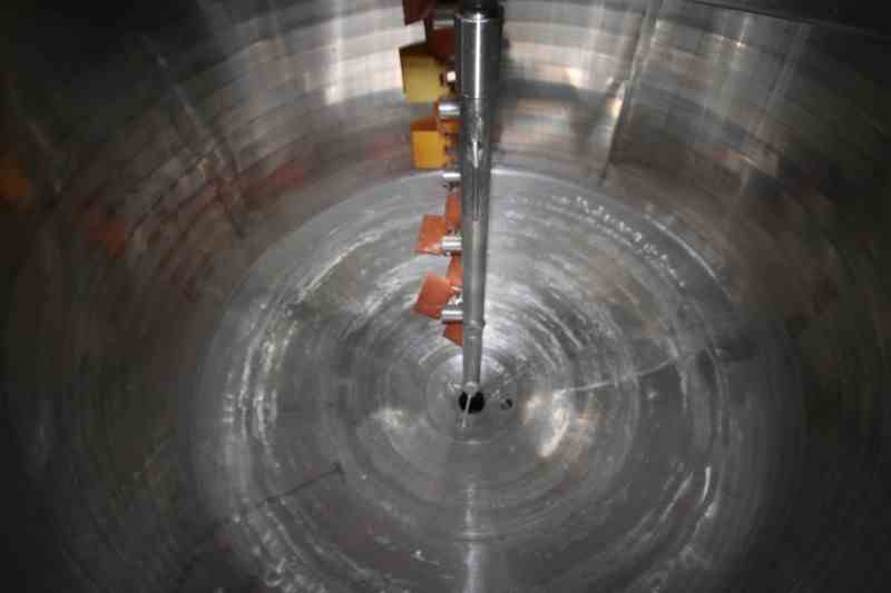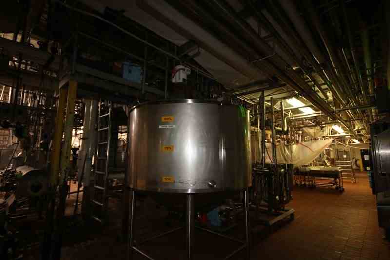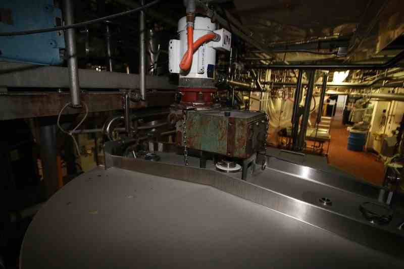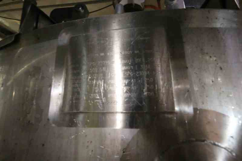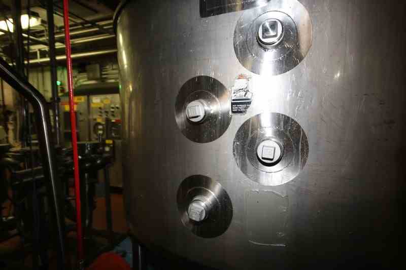 Used 500 Gallon 316L Stainless Steel Processor. Manufactured by Walker. Model #PZ-CB-B. Vessel Jacket MAWP ATM @ 250 F. Heat MAWP 25 PSI @ 250 F. Cool MAWP 100 PSIG @ 100 F. Top Mounted 3HP Motor with Agitator with side scrapers. Removable baffle. 117"OAH x 69"OD. Serial #SPG-23094. Built 2000. Weight 2200 lbs.