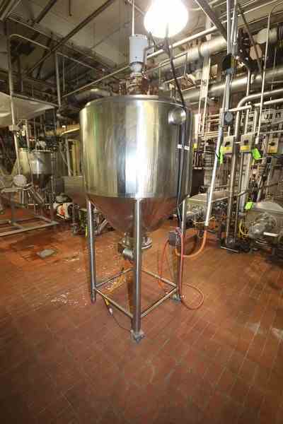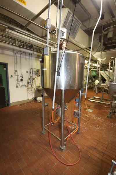 Walker 200 Gal. Vertical Single Wall S/S Surge Tank, M/N SH-200, S/N 6647, Mat'L 316 SS, with Cone Bottom, with Top Mounted Agitation Motor (LOCATED IN CHAMPAIGN, IL)