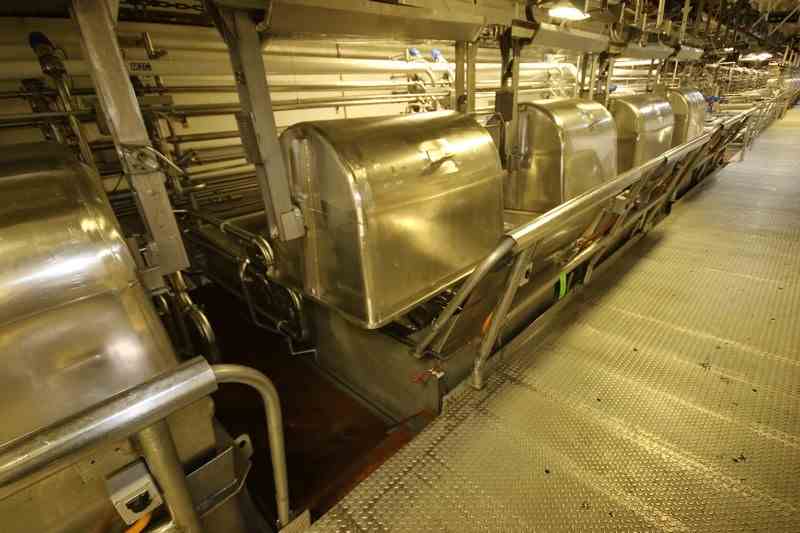 Used 350 Cu Ft Stainless Steel Paddle Blender. Manufactured by Marion. Model #SPX144. Internal Blending Compartment Dims: 144" L x 55-1/2" W x 80" Deep. 75 hp Motor, 1770 RPM, 460 Volts, 3 Phase. Overall 186" L x 67" W x 107" H. Mounted on Stainless Steel Legs. Serial #90077.